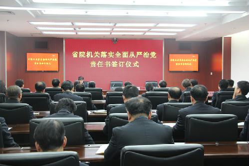 2月28日,辽宁省检察院举行2018年落实全面从严治党责任书签订仪式。这是省检察院党组认真贯彻落实党中央和省委关于全面从严治党部署要求,进一步增强省院机关领导干部全面从严治党主体责任意识,确保省院机关全面从严治党主体责任落实到位的重要举措。受省院党组书记、检察长于天敏委托,省院党组副书记、副检察长于昆主持此次责任书签订仪式,省院党组成员与机关内设机构负责人共同签订了责任书。