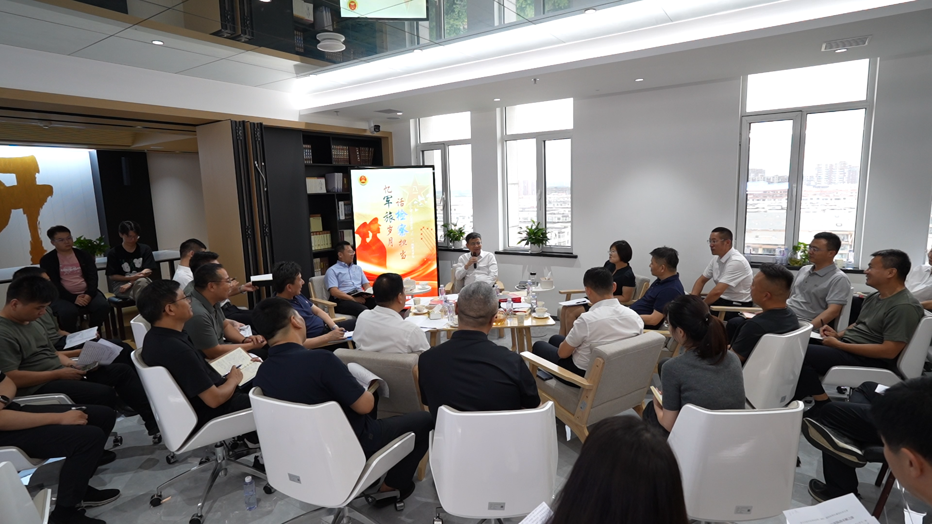 为隆重庆祝中国人民解放军建军98周年和纪念中国人民抗日战争暨世界反法西斯战争胜利80周年,进一步弘扬伟大爱国主义精神,激励省检察院机关退役军人不忘初心、牢记使命,传承发扬军人优良作风,立足本职工作为辽宁检察事业再立新功。7月31日下午,省检察院举办“忆军旅岁月·话检察担当”系列活动,40余名曾身着戎装、如今奋战在检察战线的退役军人齐聚一堂,通过队列表演、军歌传唱、座谈分享等形式,共忆军旅岁月,共话检察担当。省检察院党组书记、检察长高鑫出席活动,并与退役军人亲切互动、座谈交流。省退役军人事务厅党组成员、副厅长廖红宇莅临会议并致辞。